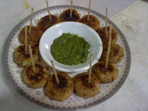 3. Add mint leaves, salt and make round tikkis. Shallow fry them on pan and serve wit coriander-mint chutney.