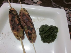 5. Roll mixture around satay sticks and grill on hot pan. Serve hot with green chutney.