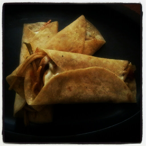 – Put stir-fried noodles in center part of roti (optional – cheese slice) and wrap from both sides.