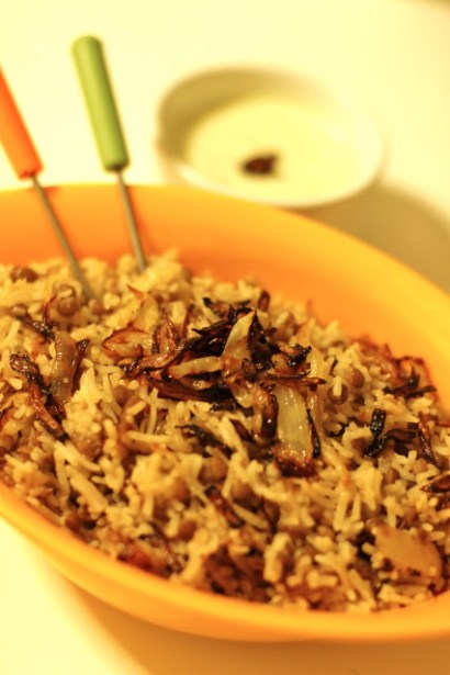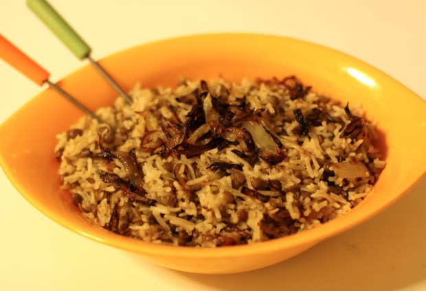 Here is a recipe of ‘Lentils n Caramelized Onions Pilaf’ :P