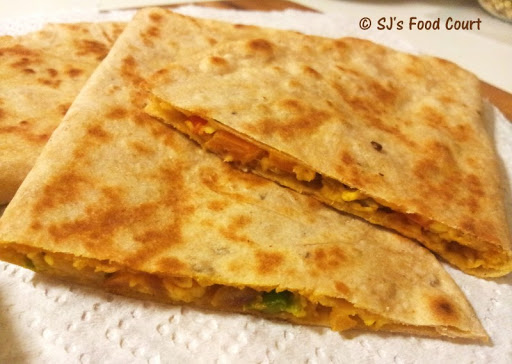 Thought of making Quesadilla many a times before, but never implemented! Last night, wanted to try a bit different bread/wrap and that too with an Indian touch… BOOM!!! Combined both of these lines n made these fusion dish with cheesy and spicy stuffing :P