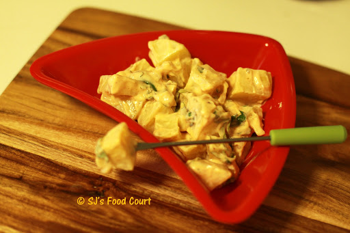 – I have used strained yogurt here to cut down the calories. You can use mayo or sour cream as well.