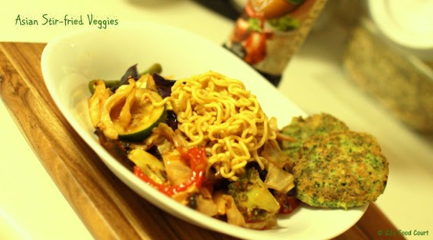 Previously when I posted crispy pancakes using rice vermicelli, Archana suggested me to serve it with asian-style soupy veggies! I don’t much like my veggie cubes in a soupy way, so prepared the same thing but in a dry form :) Thoroughly enjoyed a dish with my Mi-Goreng noodles…