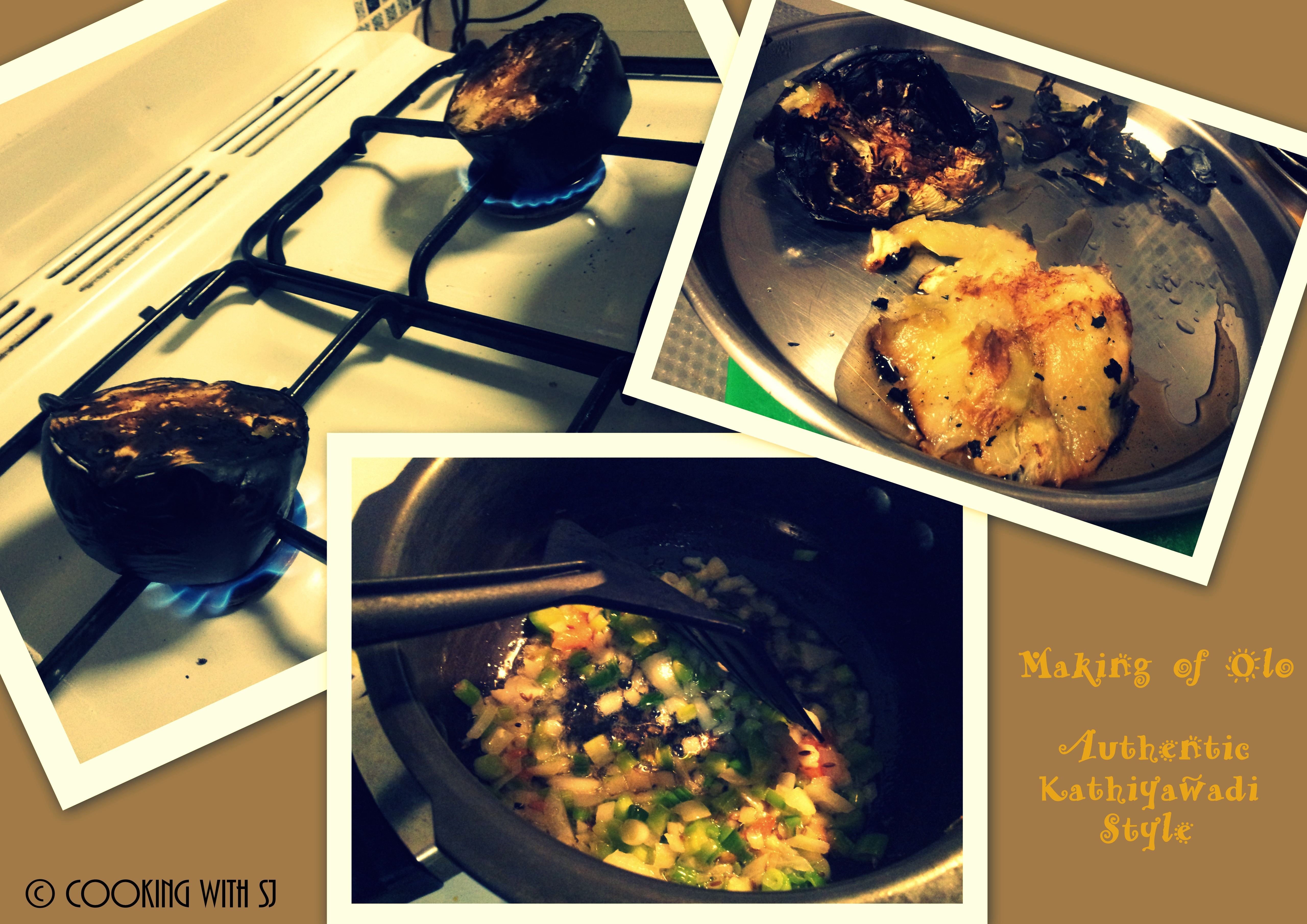 I love cooking with no doubt… But even I love getting pampered like a princess :) I feel so excited when I get to taste a special dish prepared by someone else. Hubby decided to make me feel that on last weekend! After too much of thought-processing, he finalized to make an authentic dish from Saurastra “OLO” (or call it kathiyawadi baigan ka bharta). I heard a lot about his specialty in making it, but never got a chance to have that before. And yes, I must mention that he went to get an aubergine from super-market without being a little lazy even :) Loved his energy in the kitchen that evening…