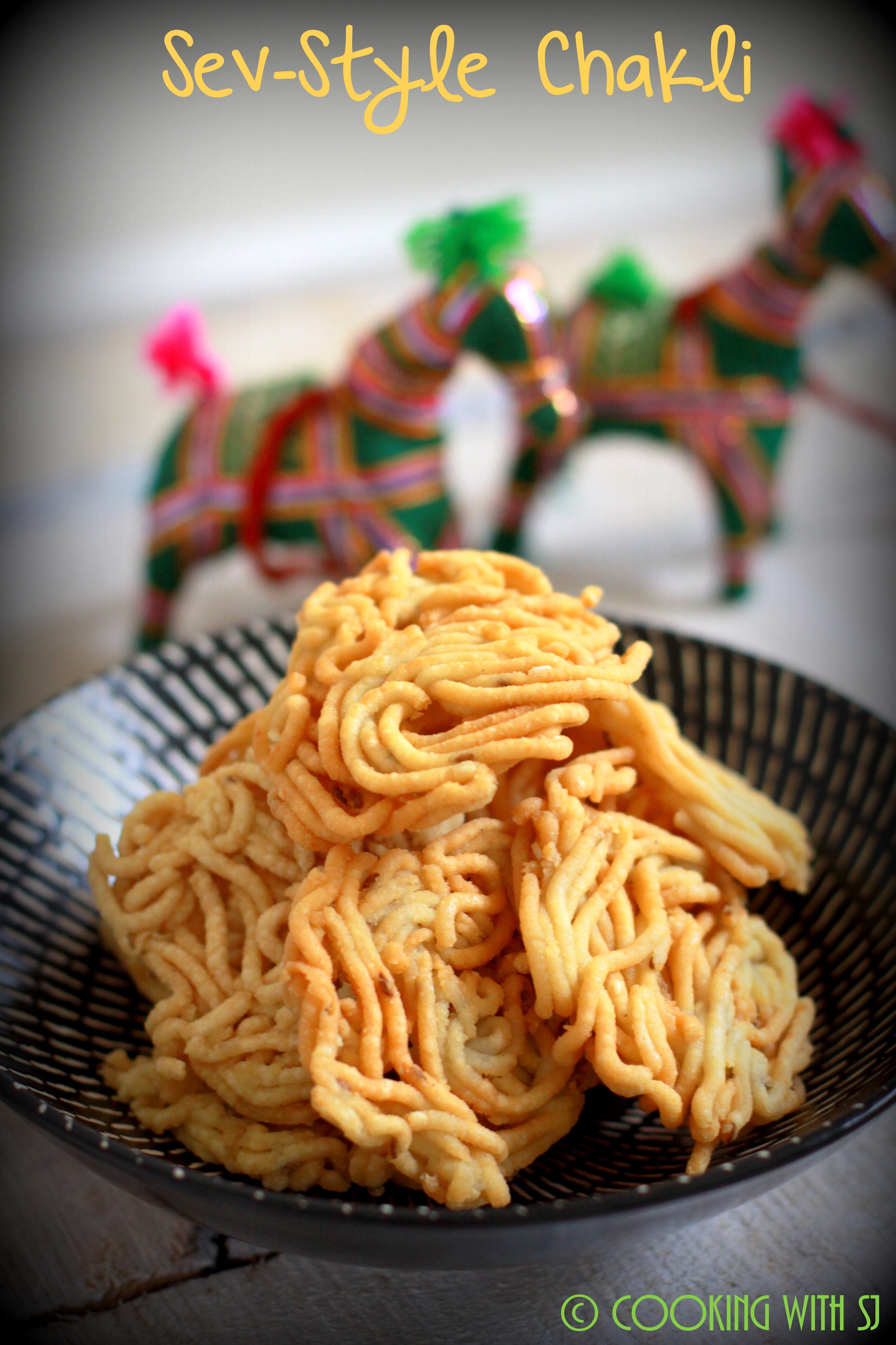 Do you find chakri making process a bit tough? Exact consistency of dough, one chakri at time, folding process etc… I actually enjoy making it, but for a change, I thought of trying out an alternate too.. Altered the ingredients a bit and made this sev-style chakris! It made me feel a combination of 2 munchies… Rice Sev (sun-dried) n Chakri :P