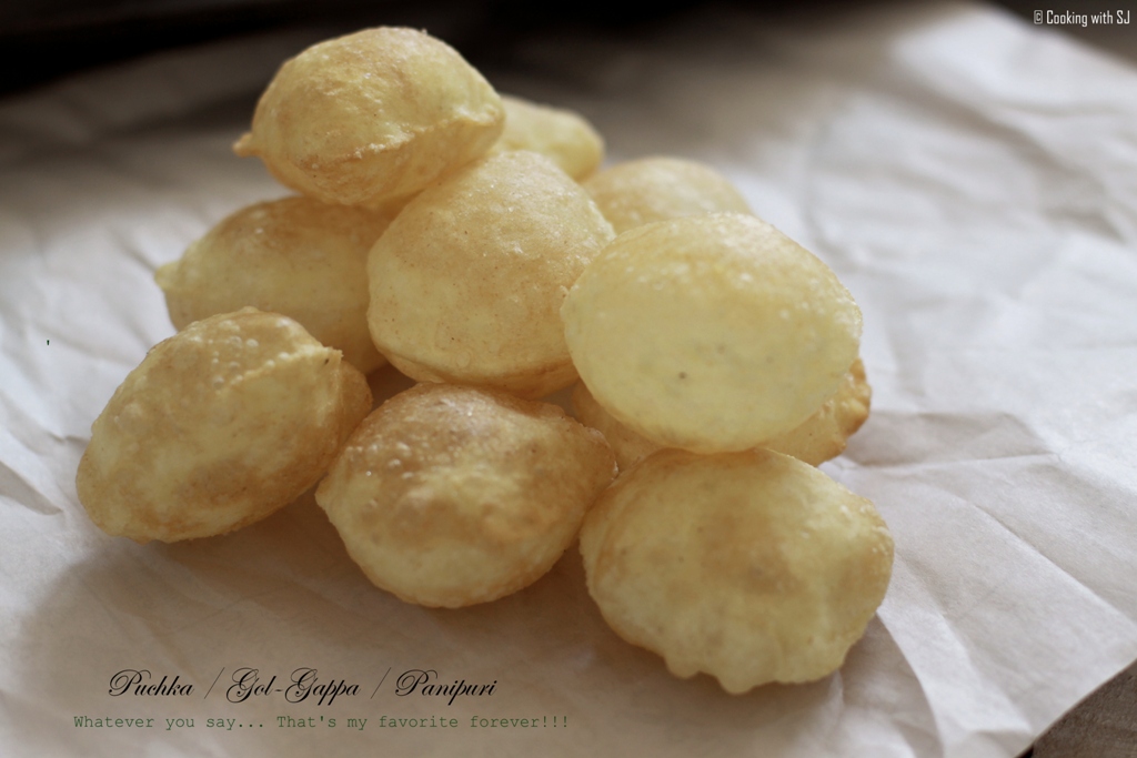 Panipuri? Puchka? GolGappa? Who doesn’t like it??!!! That has been my favorite since I was a kid. It’s easy to get those perfect round balls (puris) at any street-vendor in India… But here, I didn’t much like store-bought ones. I’m sure most of you prefer to buy readymade only as it’s a tedious time-consuming task for sure!