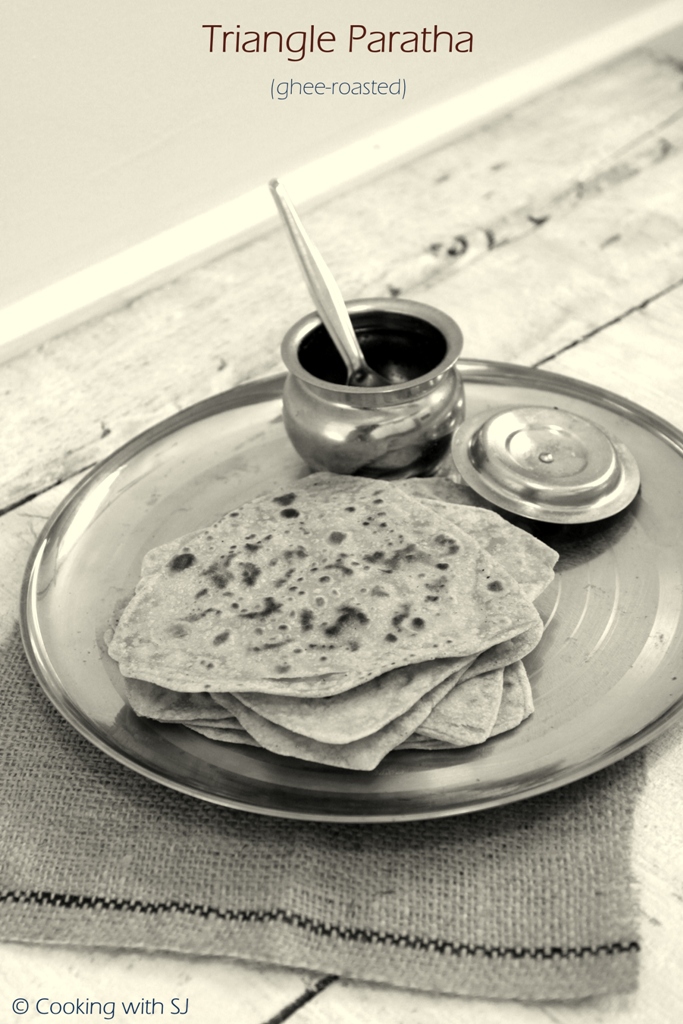 While making perfectly round rotis took some learning, I mastered the triangular quite early in the day!