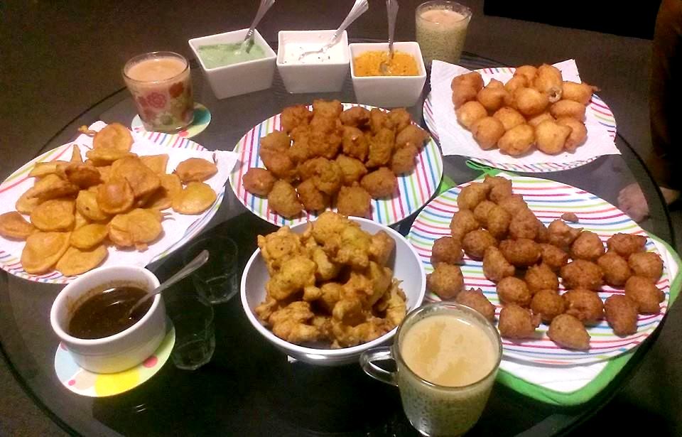 Well that looks like an amazing spread. A good idea for a get together, making pakoras :)