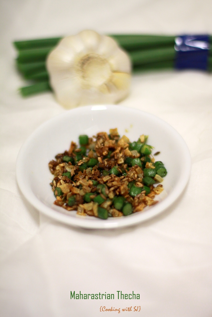 You remember my recent post on garlic scapes??!!! I made a jar full of ‘Pickled Garlic Scapes‘ and still had a few in stock. So I tried out one of my favorite – “Maharastrian Thecha” :) Well, let me share some tips & tricks for those who stay away from garlic: