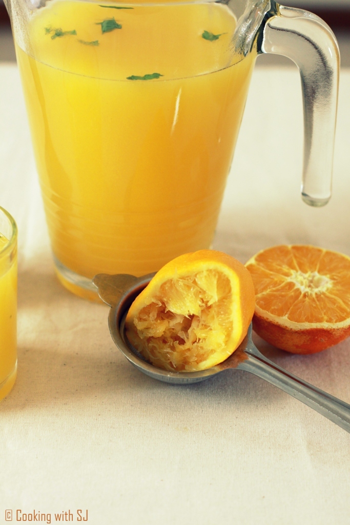 - Take it out in a jar and add orange juice along with water to make a juice consistency.