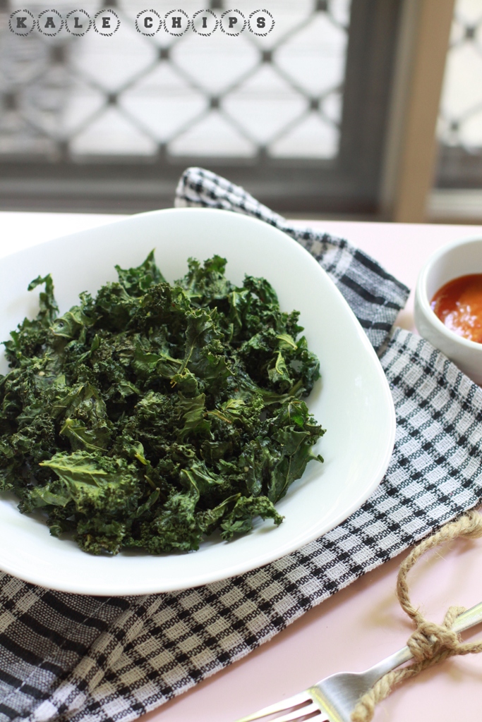 After trying Smoothie and Salad, here is something simpler than those ;) I love potato chips and so I loved these Kale Chips too!!! Well, eat it right after baking as they’ll get chewy after a few hours!
