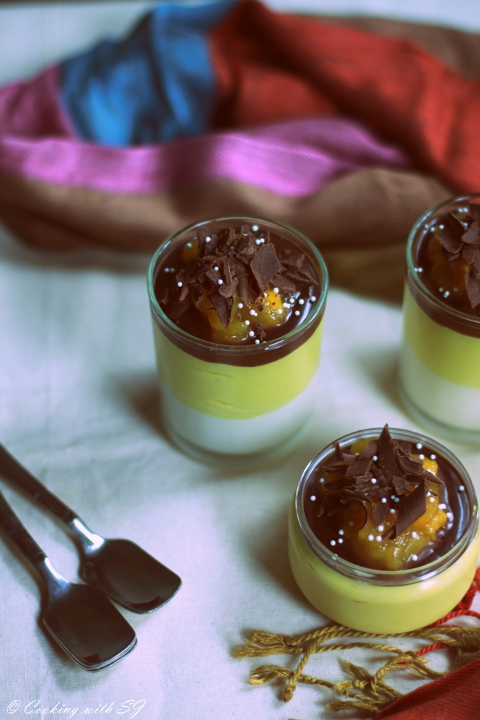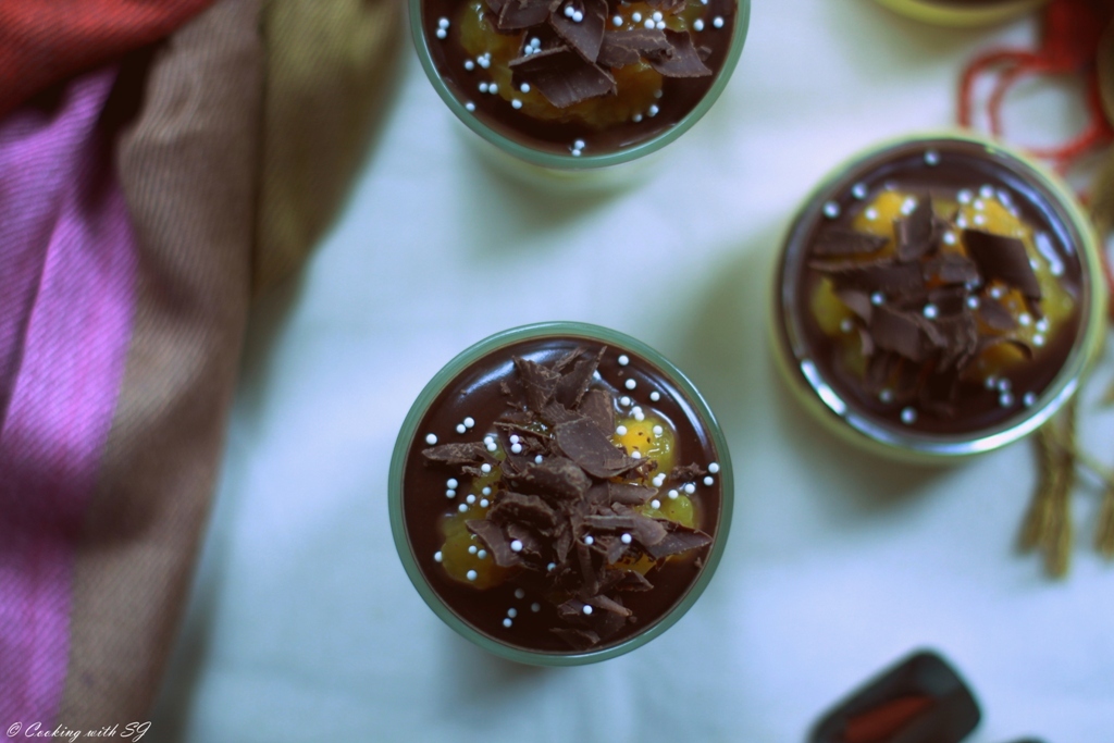 Opened a sachet of Agar Powder, pureed those mango cubes and shaved some dark chocolate :P Here you go with details of what I did ;)